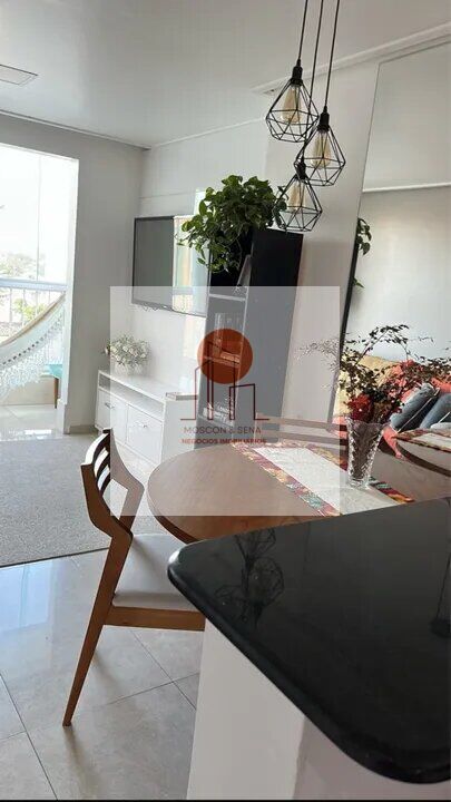 São 2 quartos, sala conjugada com a varanda com fechamento de vidro, cozinha com modulados, área de serviço com 2 modulados, divisora com a cozinha , 55m2, 1 vaga de garagem.